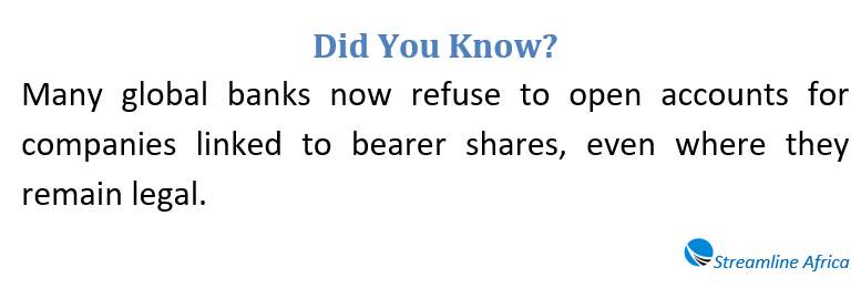 Financial institutions followed suit. Banks and investment firms grew increasingly reluctant to engage with companies or individuals associated with bearer shares, citing reputational and regulatory risks.