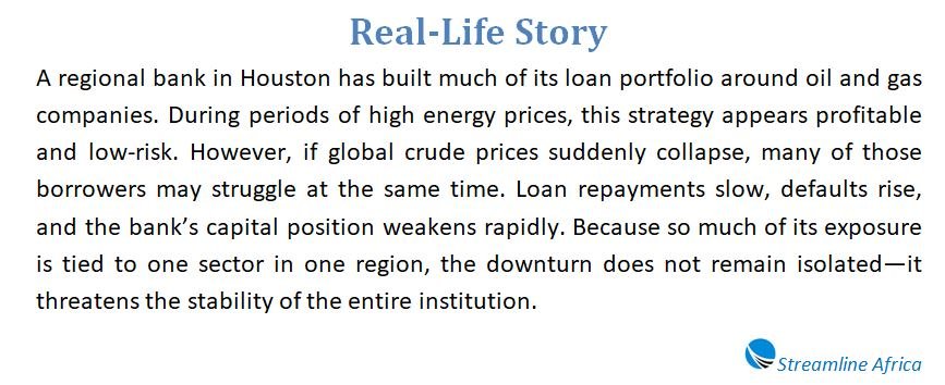 It reduces diversification, meaning if one borrower defaults or a sector struggles, the impact on the bank’s overall portfolio can be severe.