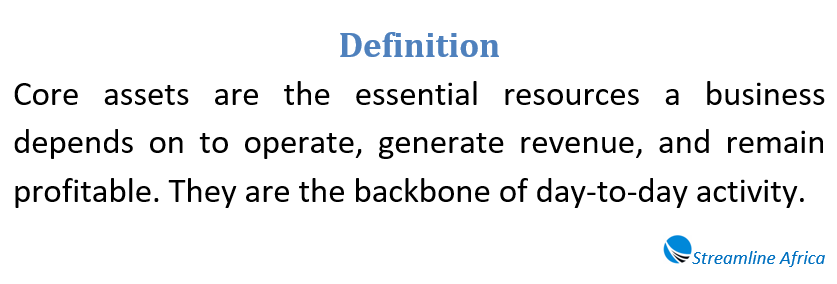 Core assets are critical for survival, while non-core assets support operations but are not required for daily functioning. Non-core assets can be sold without stopping the business.