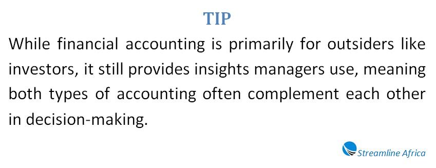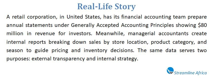 Financial accounting ensures transparency and credibility with the outside world, while managerial accounting helps businesses operate efficiently and make smart decisions for the future.