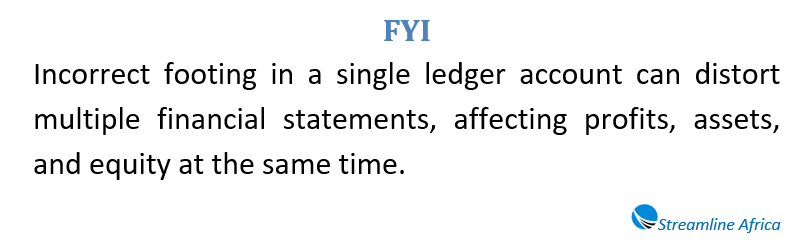Despite its simplicity, footing can still be a source of errors. These may include adding incorrect figures, skipping entries, or misplacing totals on the wrong side of the account. Such mistakes can lead to incorrect balances that carry forward into financial statements.