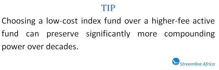 • Passively managed index funds are often more cost-efficient, helping investors reduce foregone earnings and preserve compounding power.