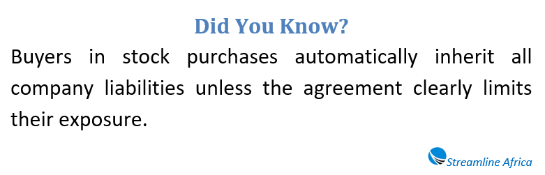 Third, the buyer assumes both known and unknown obligations. This is one of the most critical distinctions. If the company has unresolved tax issues, pending litigation, or undisclosed liabilities, the new shareholder bears that exposure unless protections are built into the agreement.