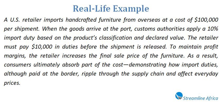 In practice, import duties shape the price of everything from groceries to electronics. They determine the competitiveness of domestic industries, influence global supply chains, and even play a role in international relations.