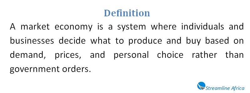 - A market economy is driven by voluntary transactions between individuals rather than centralized government commands.