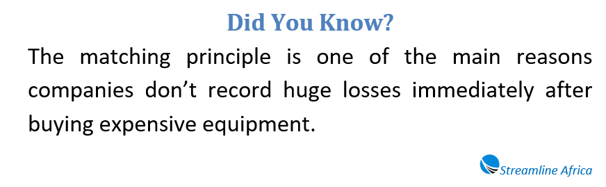 A clear way to understand the matching principle is through depreciation, which applies to long-term assets such as machinery, vehicles, or buildings.