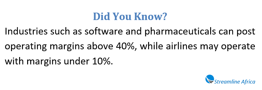 Sectors like software and pharmaceuticals often show high operating margins, while airlines and retail tend to have thin ones.