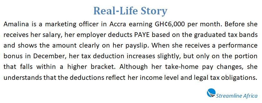 In Ghana, as in many other countries, PAYE operates on a progressive structure—meaning lower income is taxed at lower rates while higher income is taxed at higher rates. This system is intended to promote fairness, ensuring that taxation takes into account an individual’s ability to pay.