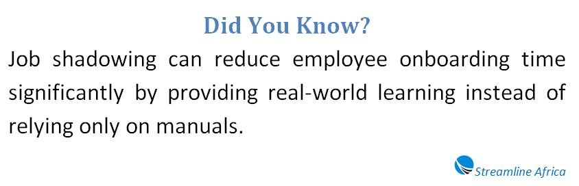 In onboarding, job shadowing accelerates learning. New hires who observe experienced colleagues early on tend to adapt more quickly and feel more confident in their roles.