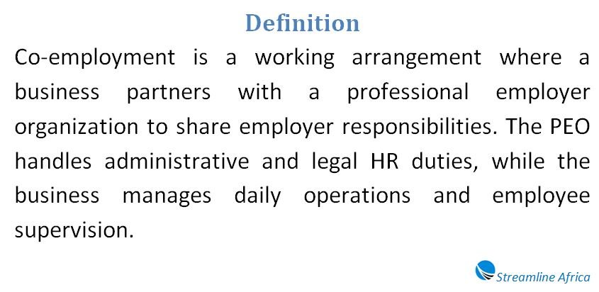 Co-employment refers to a formal relationship between a business and a professional employer organization, commonly known as a PEO. In this setup, both parties assume employer responsibilities for the same workforce. Instead of one entity handling everything, responsibilities are split based on expertise and agreement.