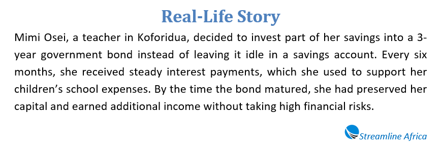 Bonds represent more than just a personal investment tool—they are a way to build the nation. When you buy a government bond, you are helping Ghana fund its schools, hospitals, and infrastructure while earning income for yourself. It’s a mutually beneficial relationship: your savings grow, and the country develops.