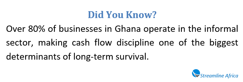Cash flow management is especially critical in Ghana, where sales can be seasonal and customer payments are often delayed. A business may appear profitable on paper but still struggle to survive if cash is constantly tied up in stock or unpaid invoices. Entrepreneurs who mix business funds with personal spending further weaken their financial position, making it difficult to track performance or reinvest in growth.