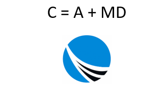 The formula is C = A + MD, where C is total spending, A is basic consumption even without income, M is the share of extra income spent (marginal propensity to consume), and D is disposable income.